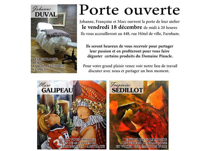 Johanne, Françoise et Marc ouvrent la porte de leur atelier le vendredi 18 décembre de midi à 20h. Ils vous ...