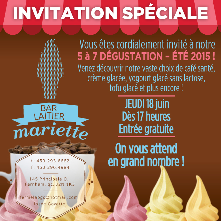 Vous êtes cordialement invité à notre 5 à 7 dégustation – été 2015. Venez découvrir notre vaste choix de café ...