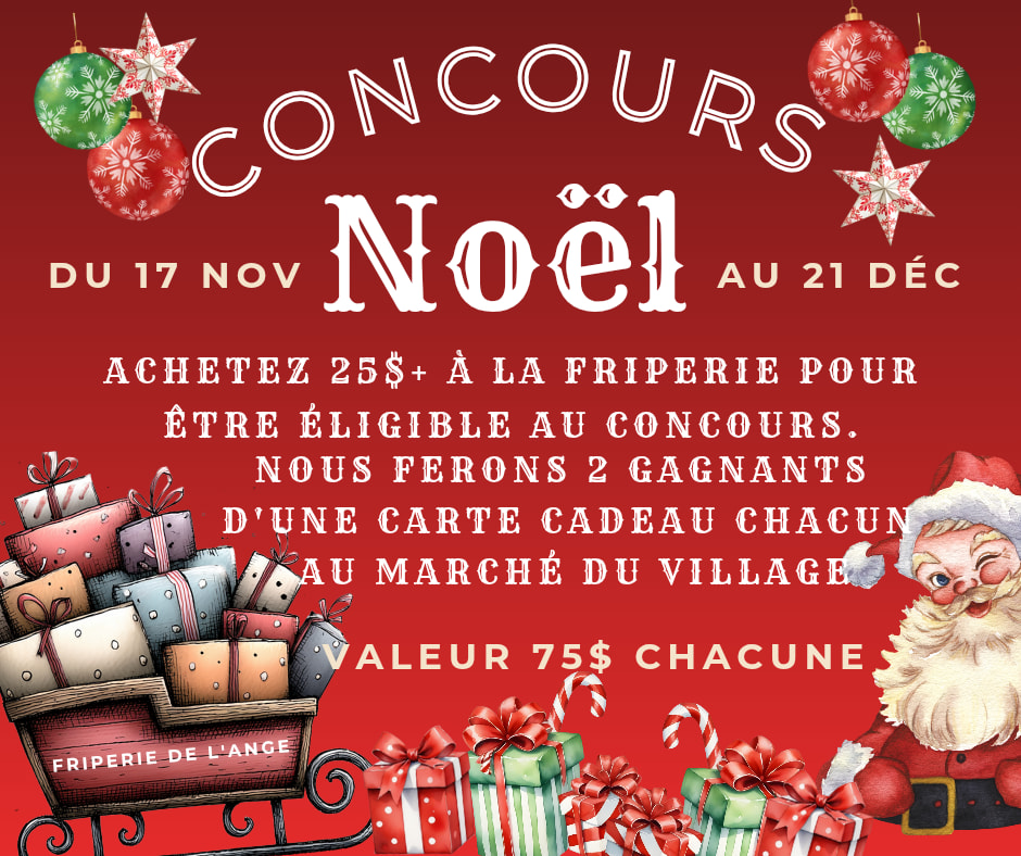 Achetez 25$ à la Friperie pour être éligible au concours.